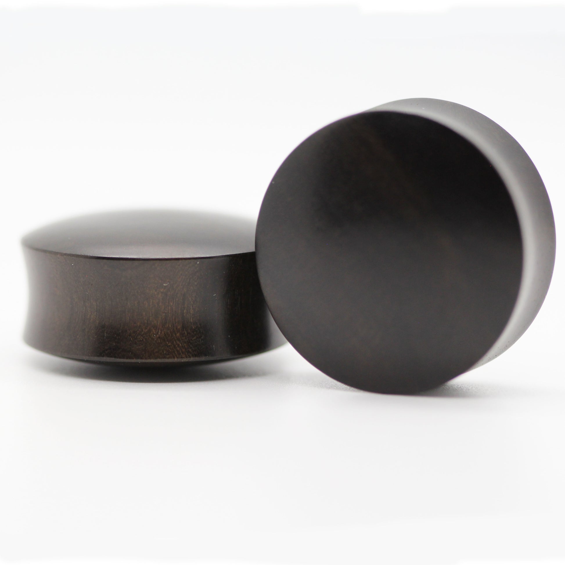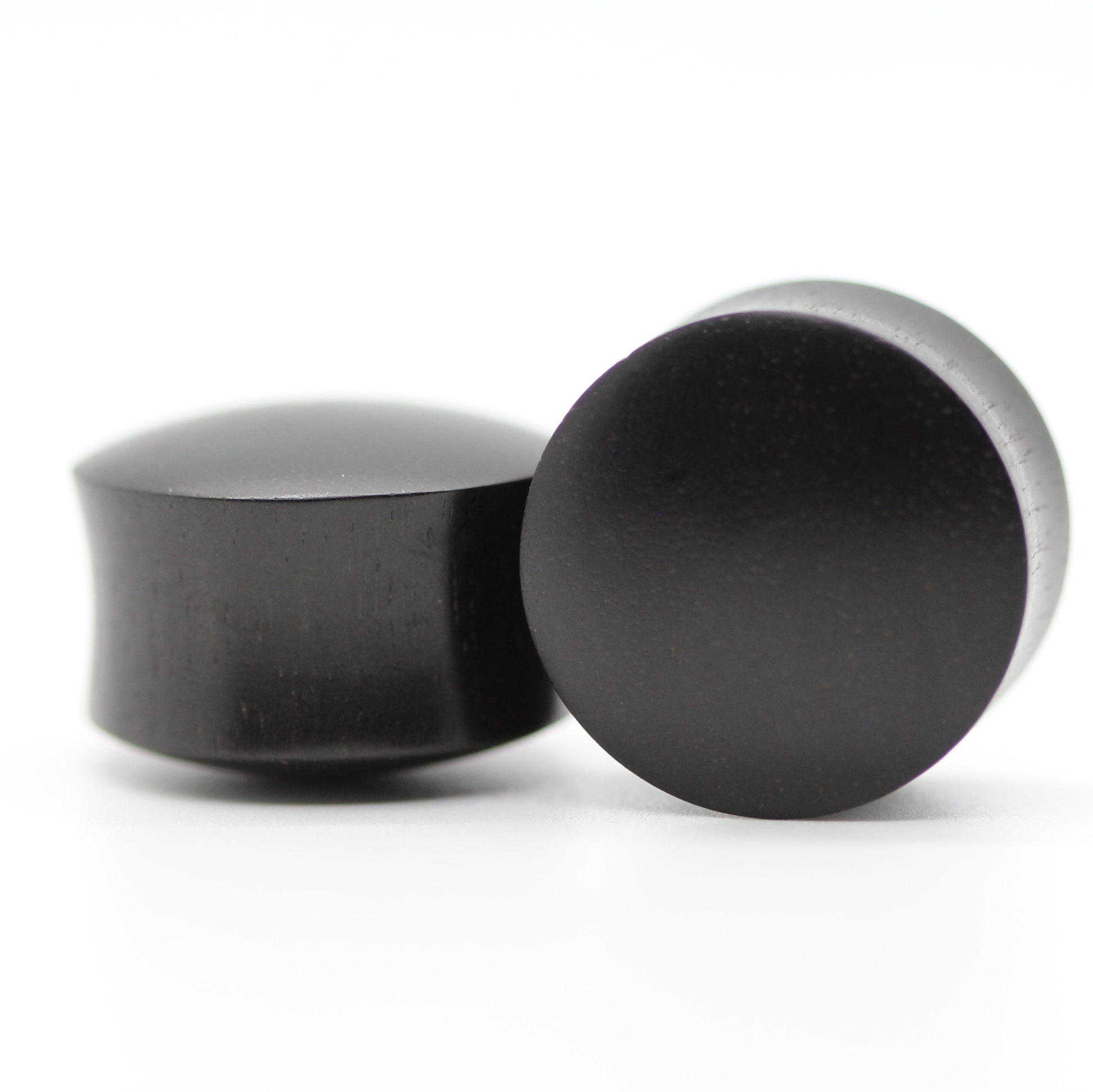 Gabon ebony convex plugs deliver sophisticated style for stretched ears with a distinctly modern aesthetic. Crafted from genuine ebony wood, these plugs feature convex faces that create visual depth and dimension while maintaining a sleek, solid black appearance. The natural wood grain adds organic character to your collection while the convex design flatters various ear shapes and sizes. A refined choice for those seeking quality and understated elegance.